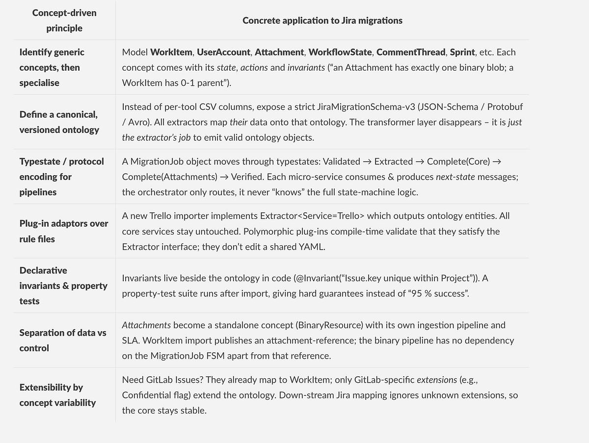 I recently came across an interesting post on the Atlassian blog about “Scaling Jira Cloud migrations with external importers.” I like delving into design — especially of systems that run at medium to high scale — so this post is an attempt to discuss the architecture Atlassian describes, highlight potential design issues, and explore an alternate concept centric approach that might make the solution more extensible and future-proof.
