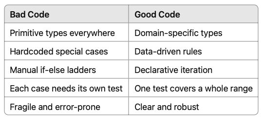 When code is full of scattered special cases, magic numbers, and primitive soup, you have no choice but to write equally messy, repetitive tests.